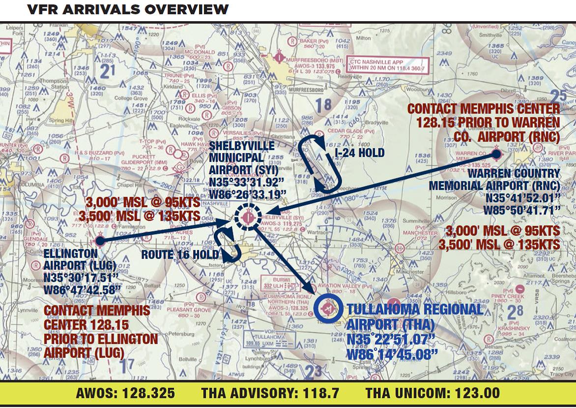 Once we got close to our entry into the approach path for the fly-in we started really watching the weather on my iPad and Memphis center was also advising of approaching storms in Nashville and had grounded flights there, we were still a bit south and it was still sunny where we were. Our path was still clear for the first entry point at 3000′ AGL above Ellington Airport (LUG) so we stayed on course but planned for landing there if the weather went south. I was handed over to the air boss for the fly-in and to my amazement we were cleared for a right downwind for runway 06 at Tullahoma while continuing on the inbound track to THA. I repeated the instructions back with a caveat that I was over LUG, I thought they were confused to where I was since I had not passed over SYI yet. They confirmed I was the only plane on the inbound course! There was a bit of rain that we flew through just after we passed over SYI but that was the only weather we had to deal with.